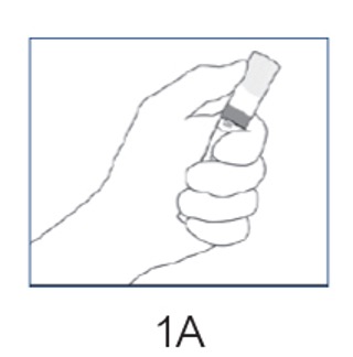 Holding the device by its cap, take the cap off and place the tube upright on a clean surface.
